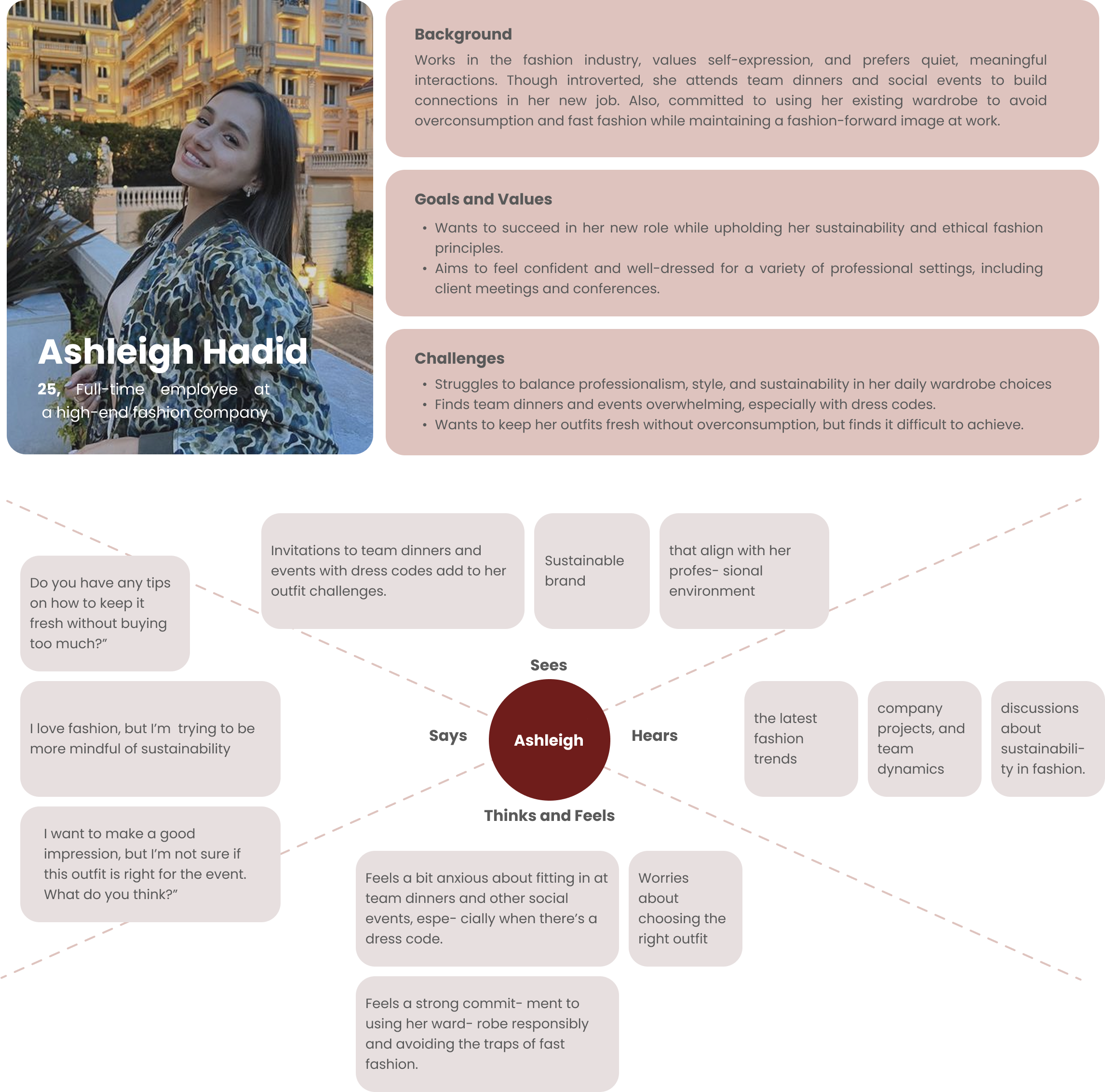 Through background research, we expanded the project to explore how wardrobe management, sustainable outfit choices, and social sharing can strengthen social connection, promote sustainability, and ultimately enrich everyday well-being.