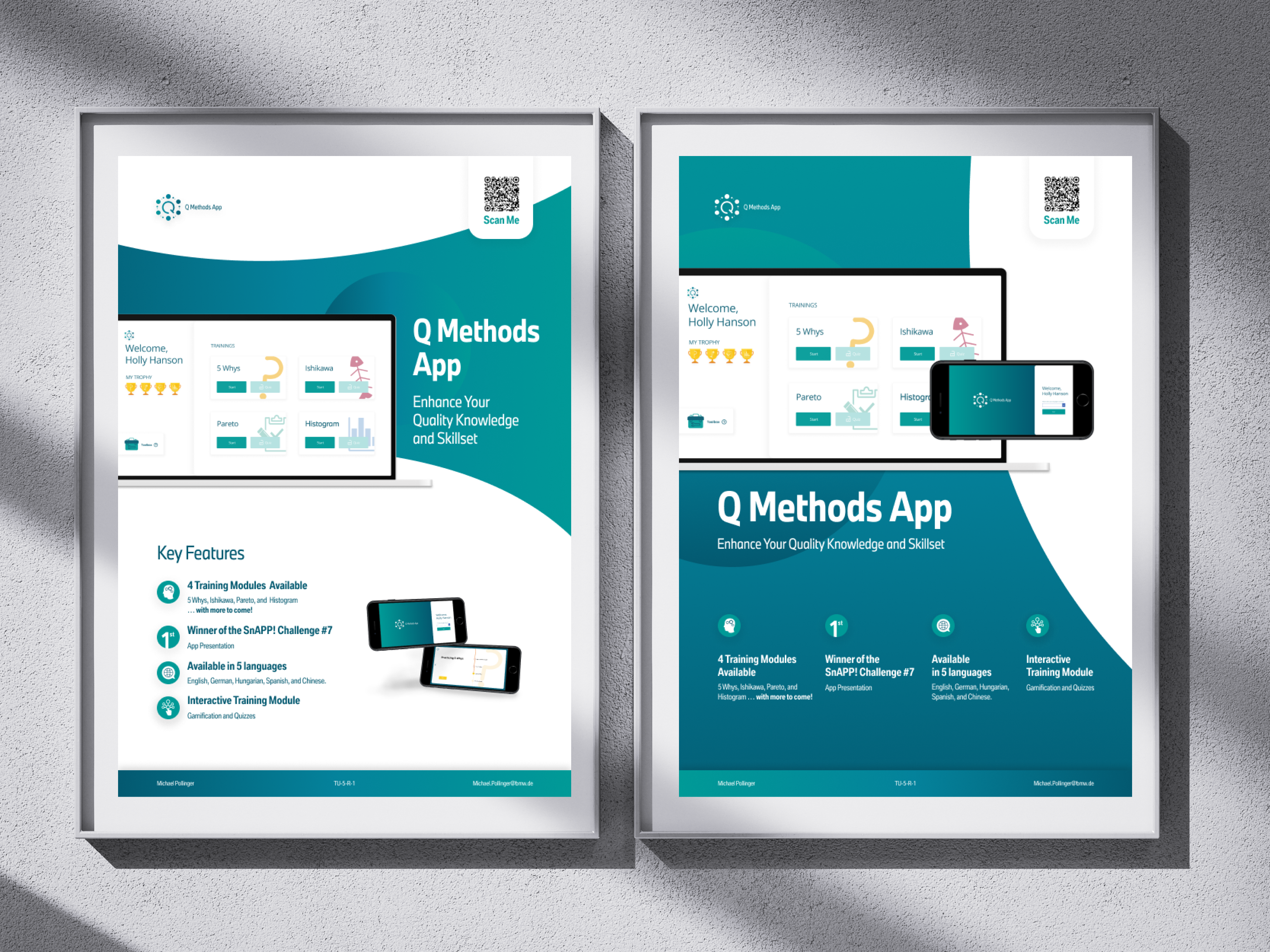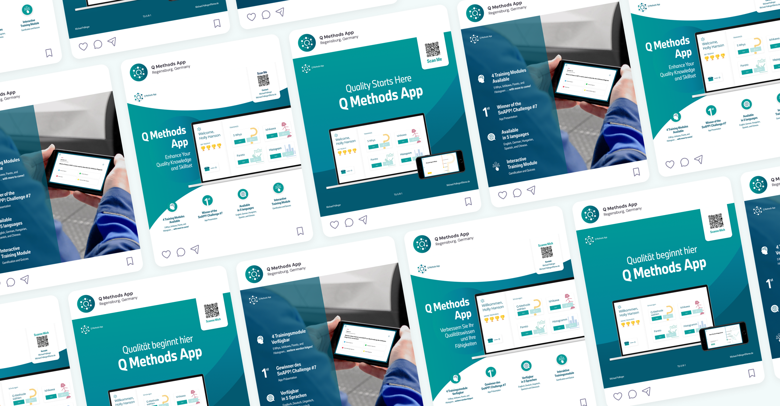 The ‘Q’ symbol used in the logo was designed based on the core Quality logo. A lock shape was integrated into the symbol to visually represent the escape room concept central to this training.