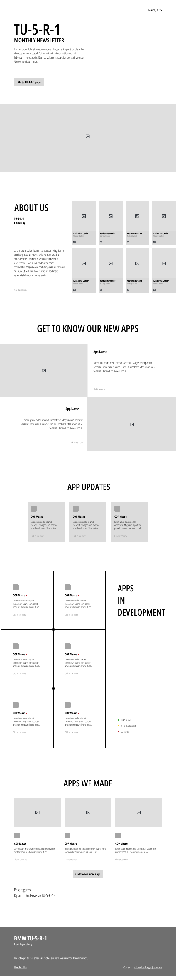 The newsletter was designed to synchronise the various BMW app innovation teams across different plants and departments as well as to create a regular communication channel