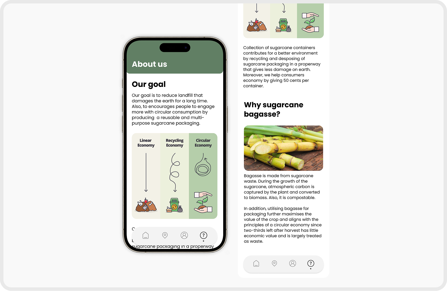 A sugarcane-based takeaway packaging brand and mobile application that addresses circularity challenges