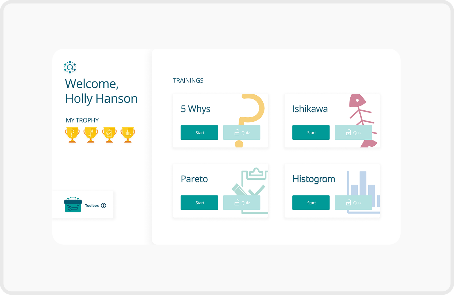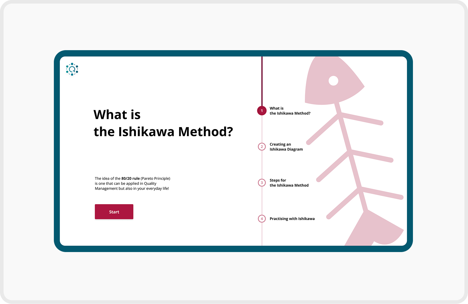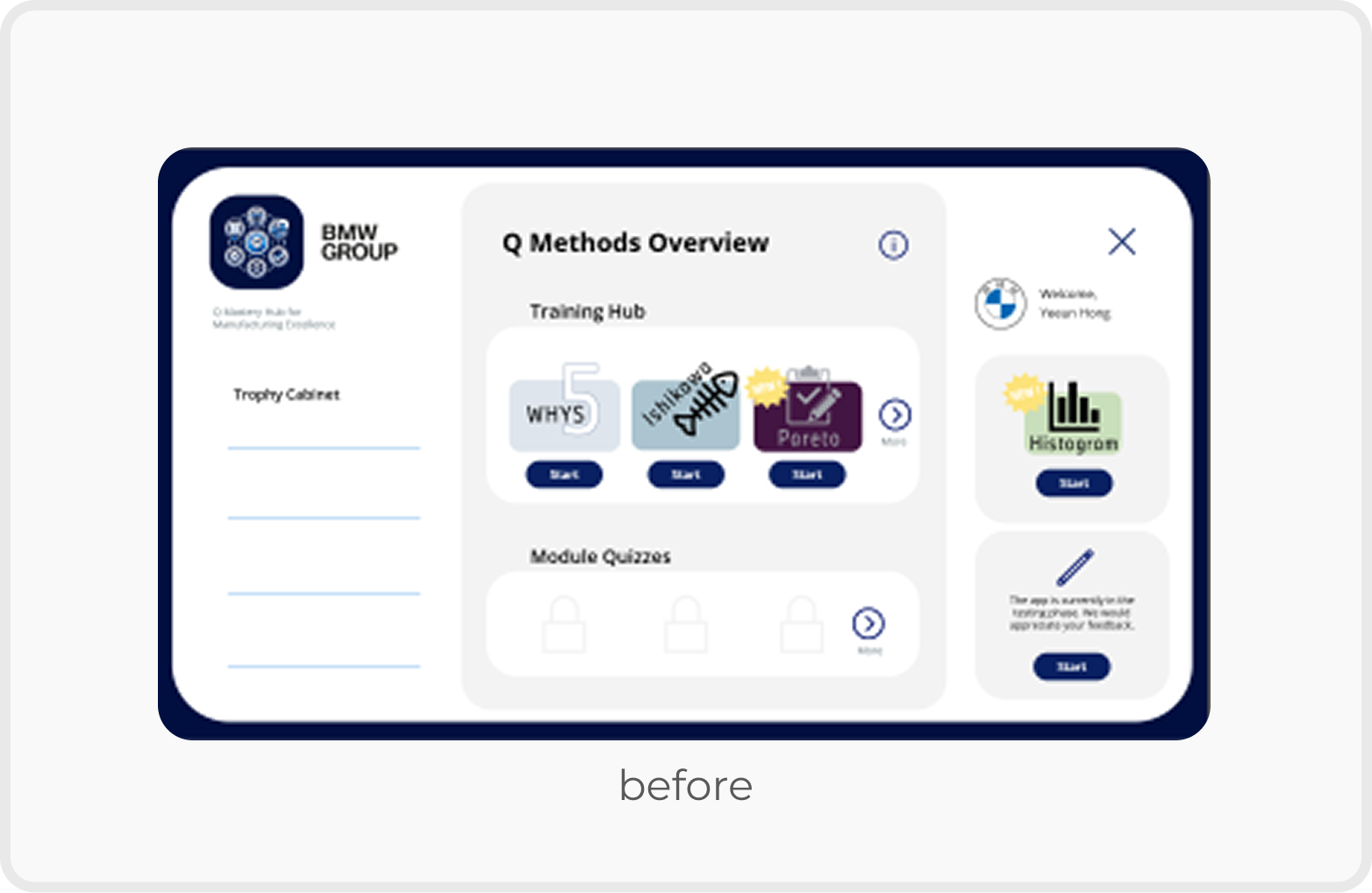 The Q Methods App is a multilingual internal training application (80+ pages) designed to support BMW employees in learning quality management methods.