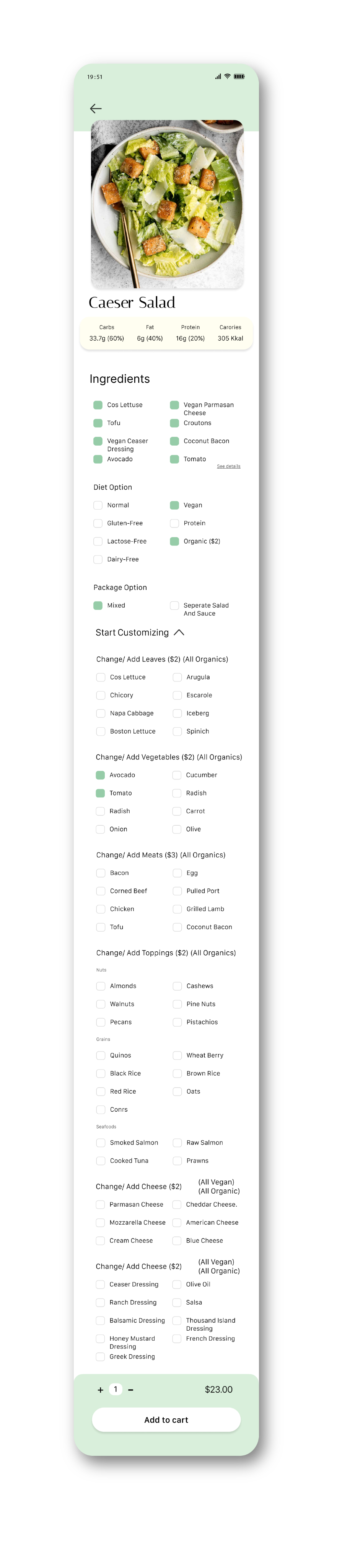 A custom salad ordering app that empowers users to build healthy meals with ease