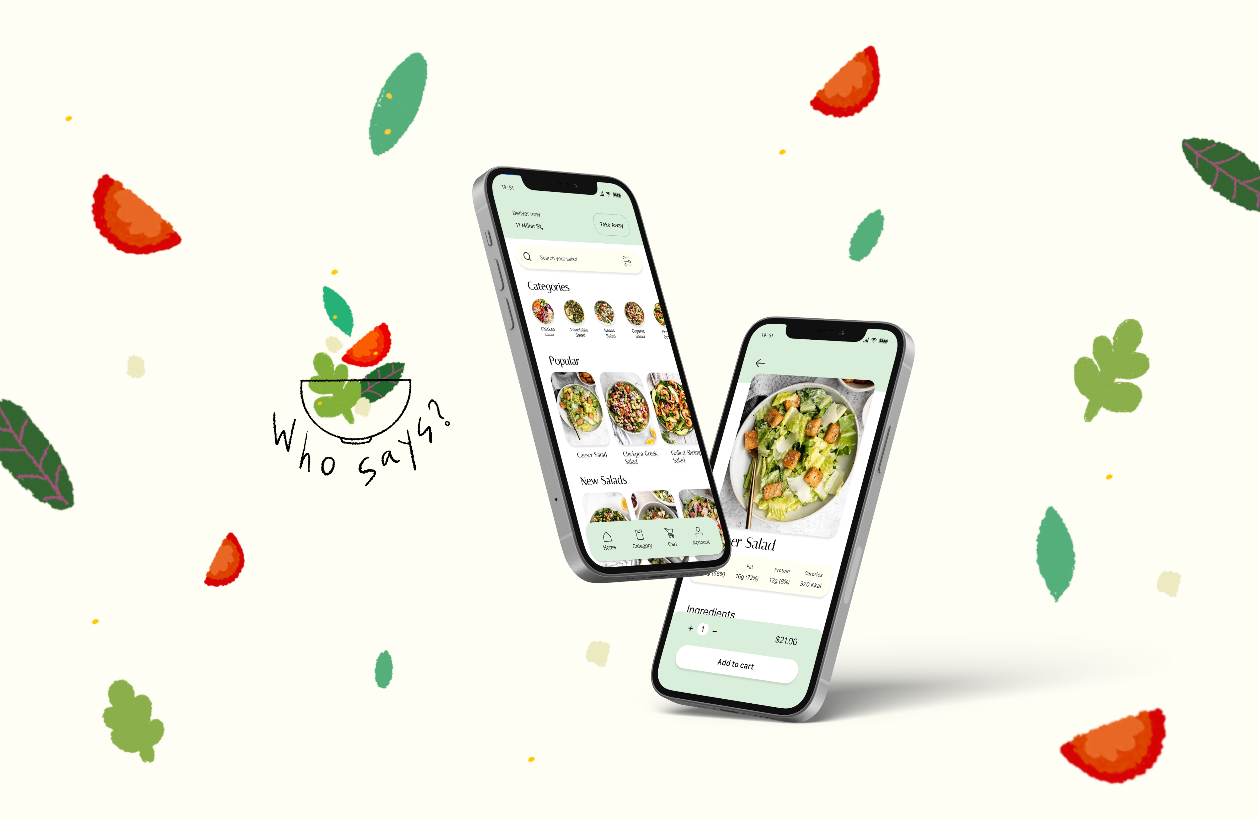 Who Says? is a custom salad ordering app that enables users to effortlessly build their perfect bowl with ingredients tailored to their taste and dietary needs.